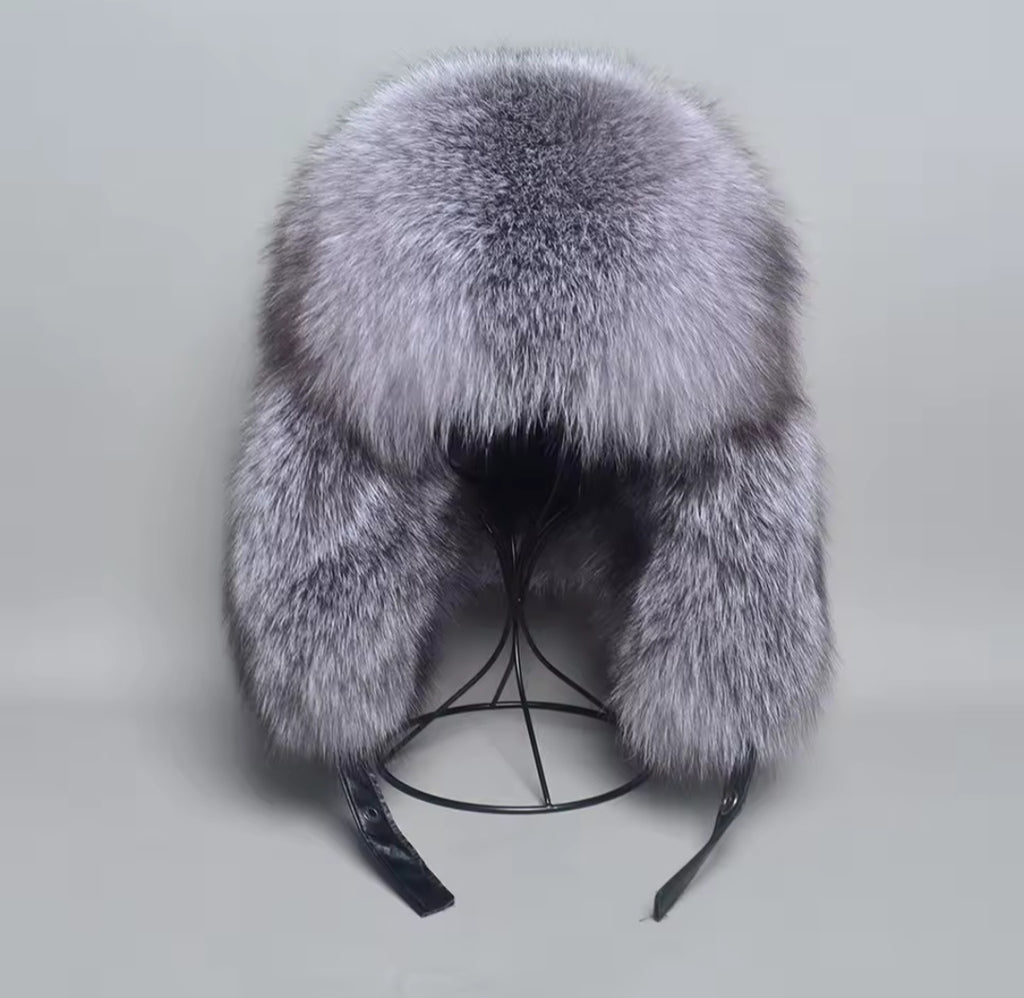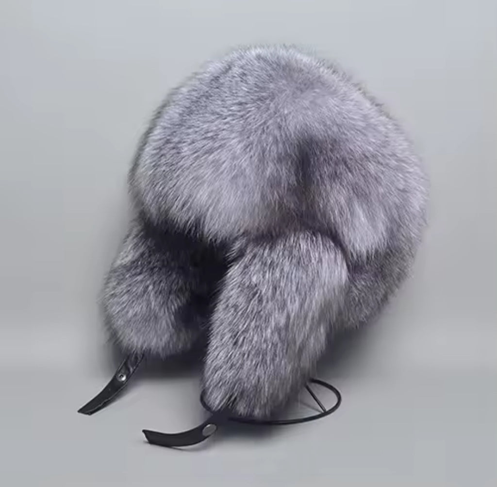 Authentic Russian Fox fur Trapper hat. This hat is not raccoon fur.., its covered entirely in fox fur. There is no leather